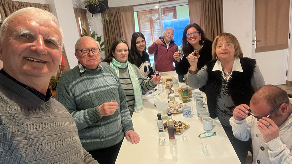 Gracias a los presentes, la mesa se llenó de diversos dulces, que se disfrutaron con café, té y mate. De vez en cuando, se brindaron con vodka Tatowa y licor de cereza.