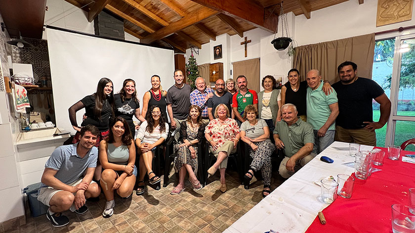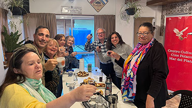 La c olectividad polaca y la delegación del Municipio de Łukowica momentos antes del almuerzo en la sede del Centro Cultural Cine Polaco MdP. Fot. P. Solodki