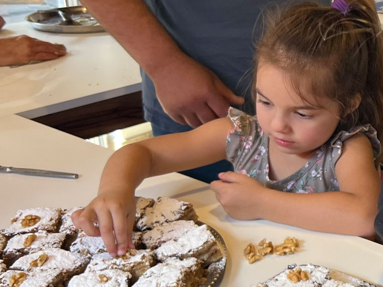 Los primeros pasos de Leonela aprendiendo a hacer tarta de manzana. Foto de J. Stawecki.