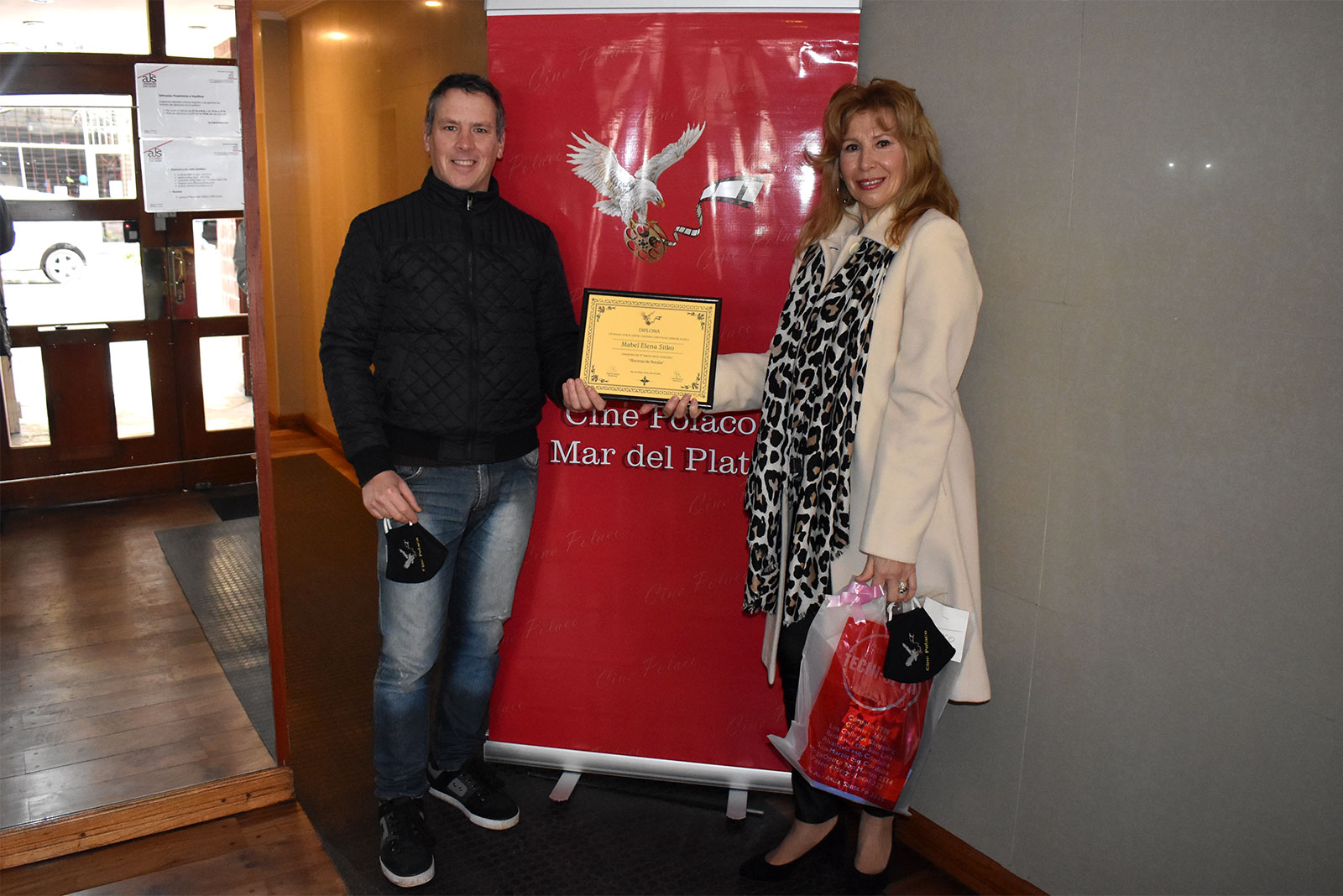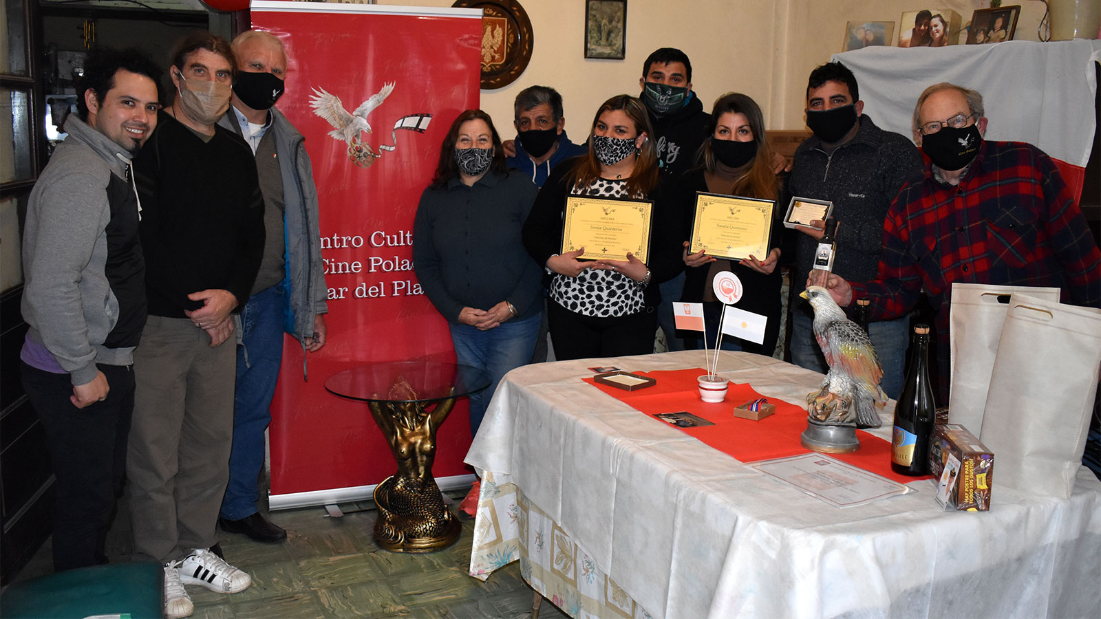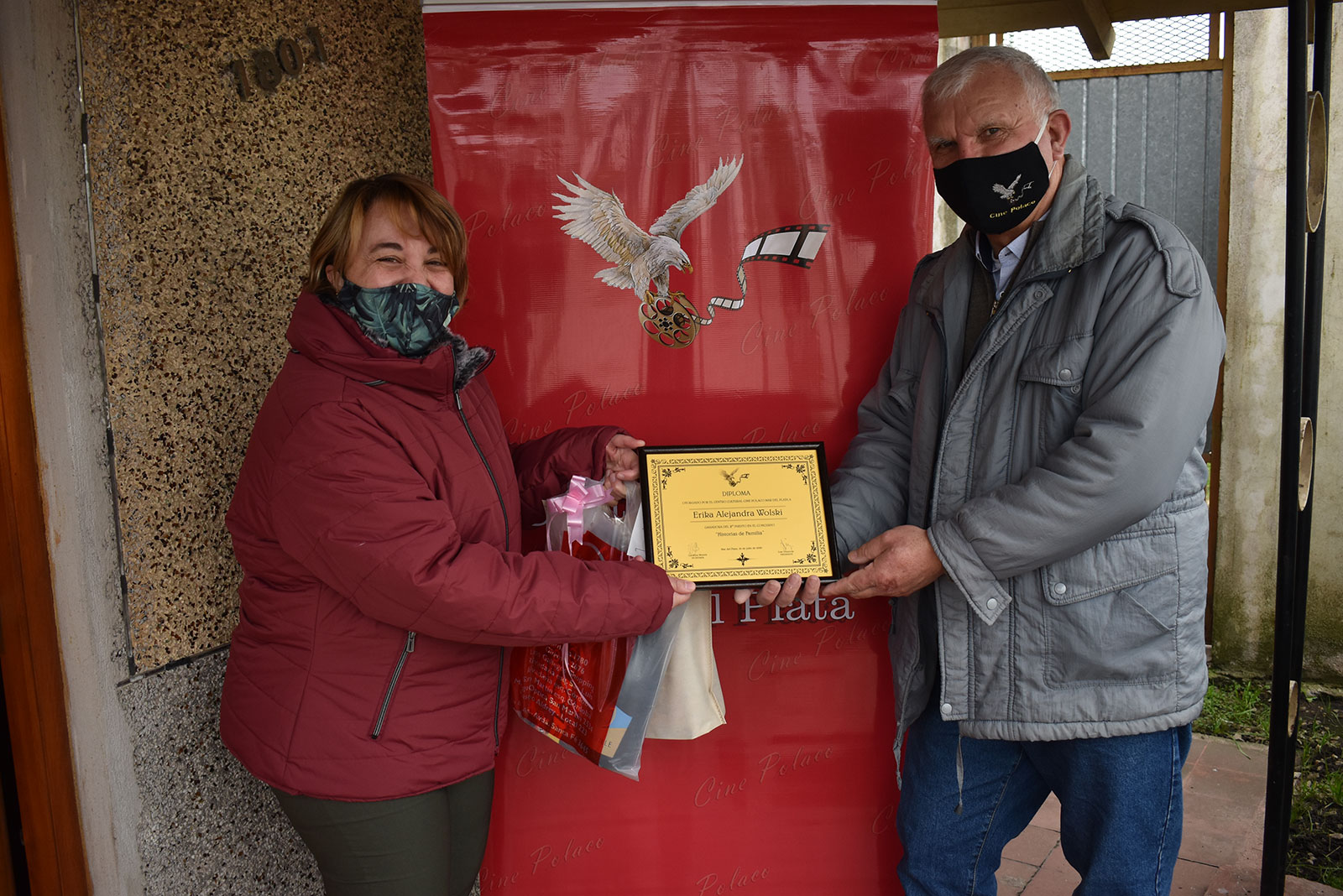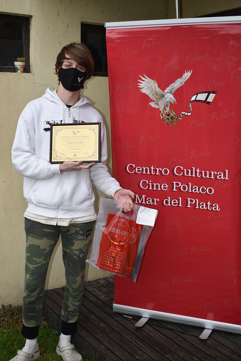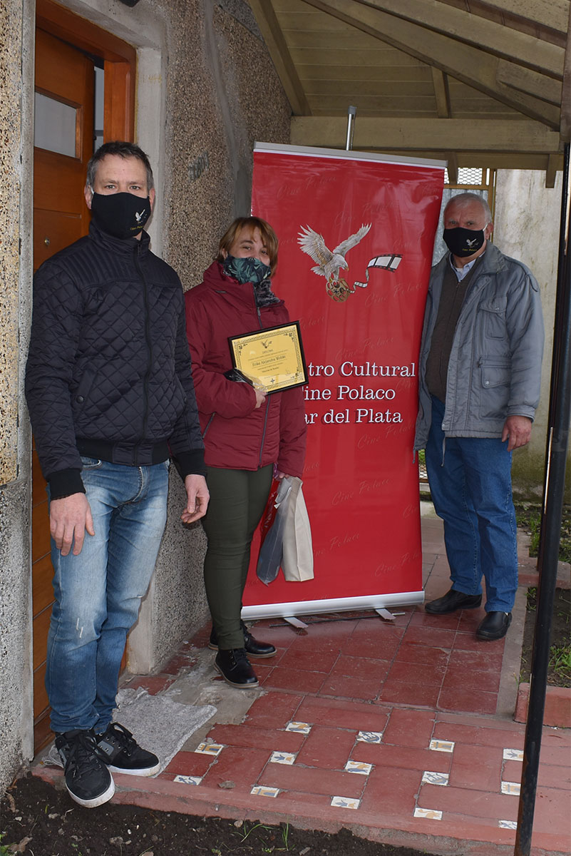 Si bien la que mandó el trabajo para el concurso fue Natalia, las dos hermanas tuvieron su participación por igual en la edición del video, "Historia de un Polaco en Argentina, Norberto Palinski". El Centro Cultural Cine Polaco Mar del Plata decidió otorgar premios también a Sonia Quinteros ya que se valoró su esfuerzo de igual modo que Natalia, en hacer un homenaje a su abuelo Norberto Palinski. Como primer premio se otorgó la mesa ratona artesanal "Sirena" con vidrio, de procedencia polaca. Además, a ambas se le otorgaron los diplomas del ganador del concurso y otros premios más con un valor aproximado de $1500 cada uno. Las ganadoras recibieron también tapabocas con logo del Centro Cultural Cine Polaco, muy útil para estos tiempos de pandemia. |