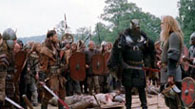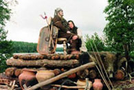 Recreación de la batalla en festival internacional de Wolin. Un fragmento de la batalla entre los eslavos y los vikingos. |