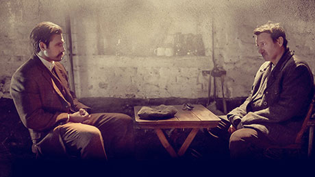Stephen Underwood (Alex Pettyfer) izq. y Michał Łobody (Robert Więckiewicz) der. en "El último testigo". |
