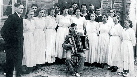 Al hablar de los primeros años de la vida de Czesław Niemen, Magowski combina audazmente grabaciones de archivo (incluidas las historias de su hermana), habla con los amigos de Niemen y recrea imágenes de su infancia con actores jóvenes. Gracias a esto, su documental cobra vida, se convierte en algo más que una colección de "cabezas parlantes". Cuando a finales de los 90 el semanario "Polityka" preguntó a sus lectores cuál de los músicos polacos era el artista más importante del siglo XX, Czesław Niemen ocupó el primer lugar, y su ventaja sobre otros artistas fue abrumadora. En los tiempos de la República Popular de Polonia, fue la estrella más grande de la escena polaca. En los años de su mayor popularidad, sus álbumes vendieron millones de copias, fue amado por el público de todo el Bloque del Este. | Czesław Wydrzycki, más tarde Niemen, con el coro que fundó en Stare Wasiliszki |