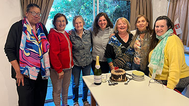 Teresa Wilczynski (en frente) con la Comisión de Cine de Cáritas Catedral MdP. Fot. Cáritas Catedral MdP