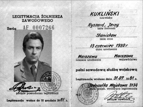 Última identificación militar del coronel Kukliński. |
