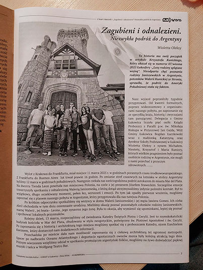 Esta historia comienza con un artículo de Krzysztof Kunicki, publicado en la edición Nº 7 / primavera 2025 de Łukosfera, titulado "El destino de una familia enredada por la guerra". Un deseo irresistible de conocer a la familia Janiszewski en Argentina, descendientes de Waleria Kunicka de Stronie, hizo realidad el viaje a Sudamérica.