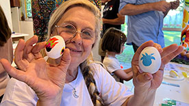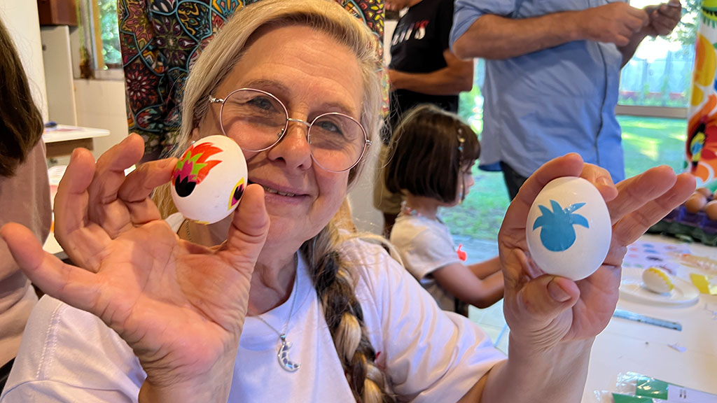 Todos los presentes se volcaron en el trabajo. La Sra. Cónsul también cumplió diligentemente con su parte. En resultado los huevos de Pascua quedaron estupendos.
