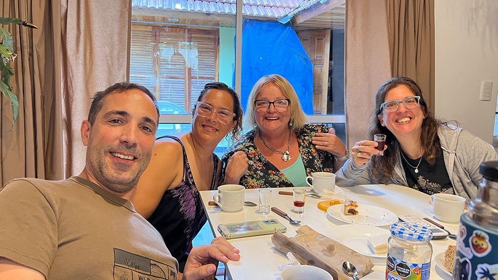 Tras un breve descanso, nos reunimos en casa de Valeria Janiszewski y su esposo, Javier Gómez. Su hija, Abril, celebraba su decimoctavo cumpleaños. Tuvimos la oportunidad de conocer a los demás miembros de la familia Janiszewski: la madre de Valeria, su hermano, Leonardo, su esposa y su hijo. Fue una oportunidad para intercambiar regalos, conocernos mejor y degustar delicias locales.
